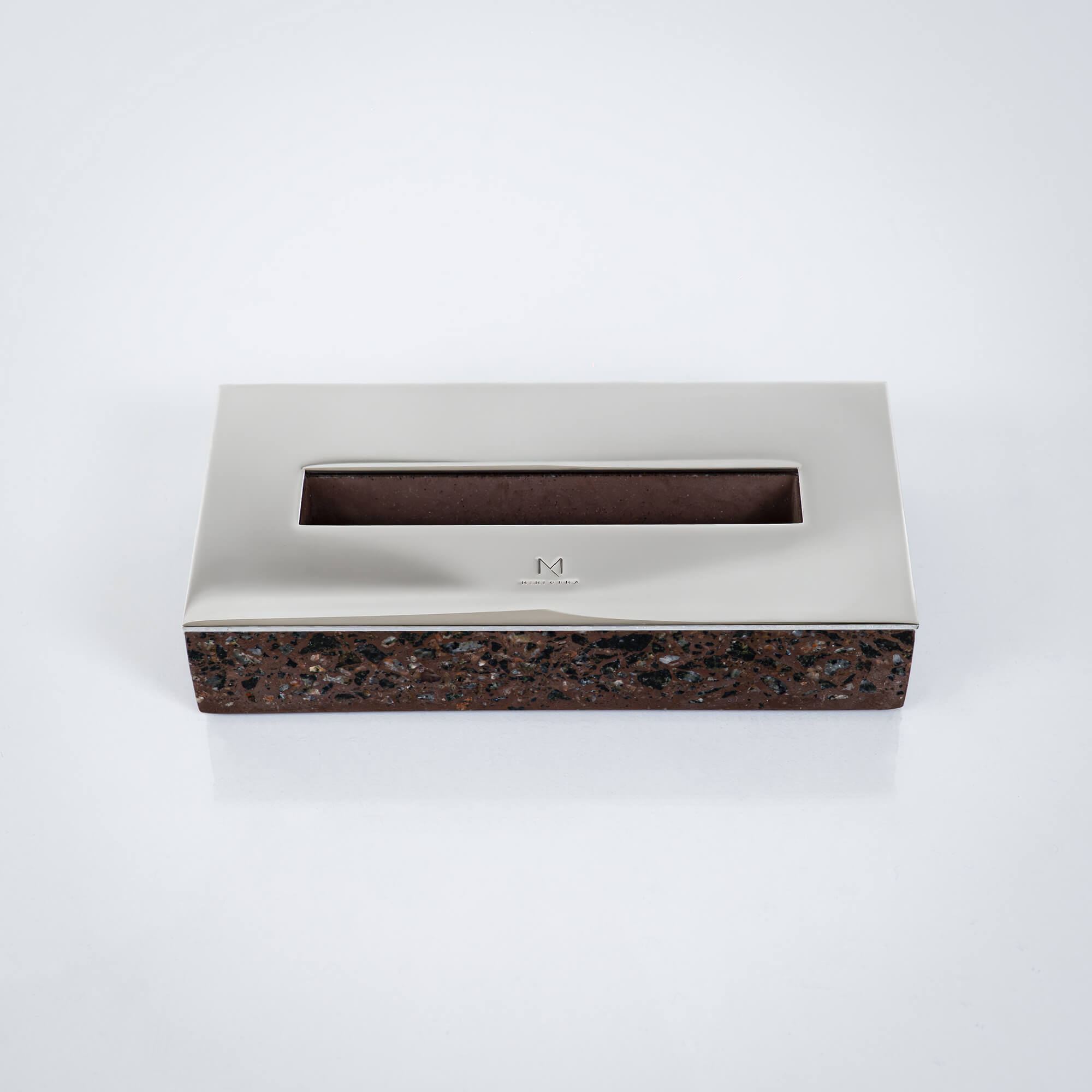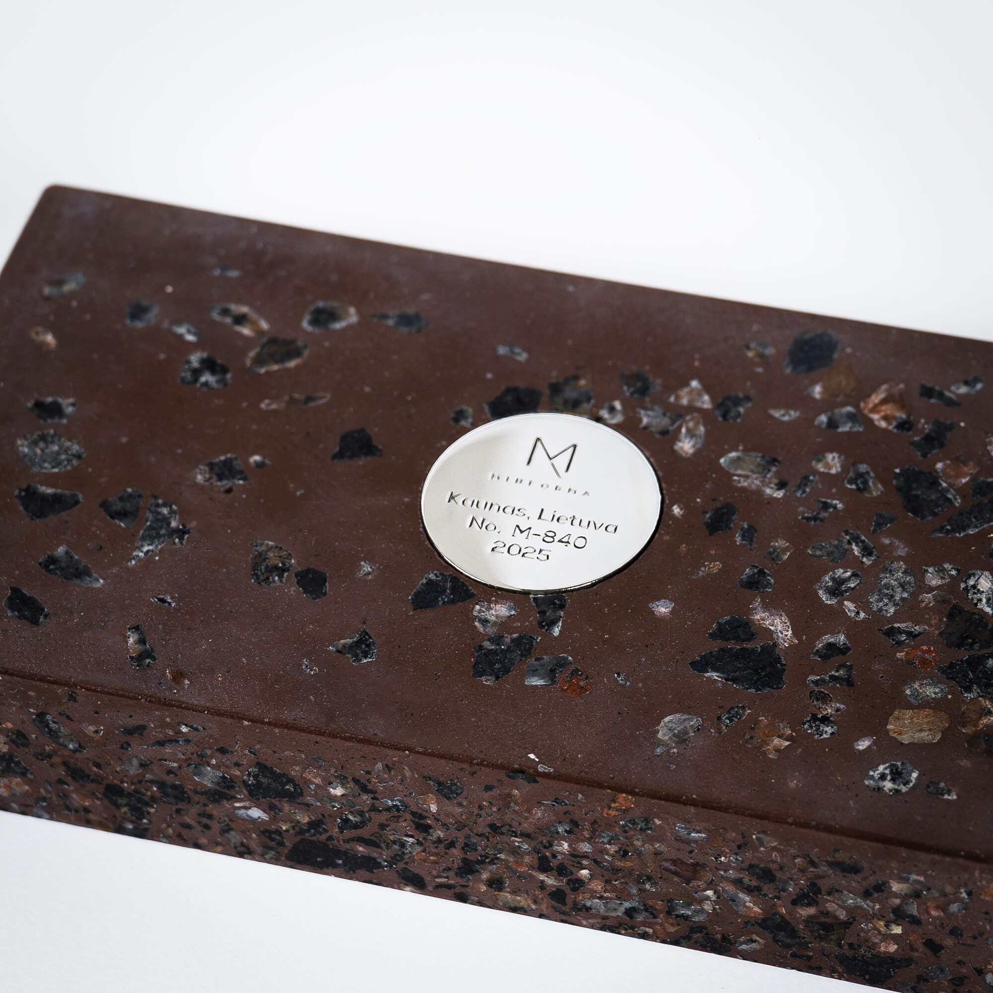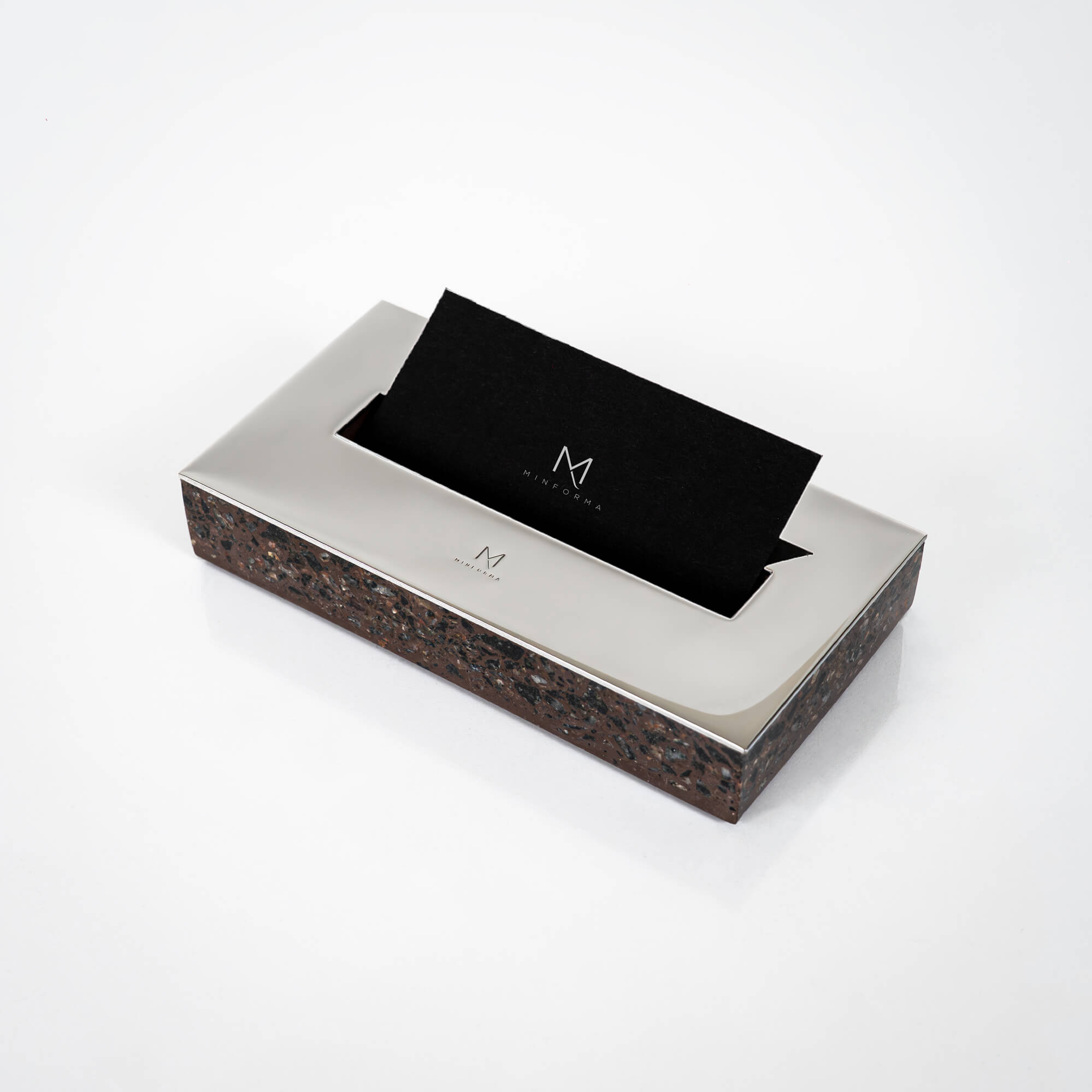 Handmade brown terrazzo stone business card holder made of premium blend of marble and granite. Minimalist and luxury element for home or office desk.