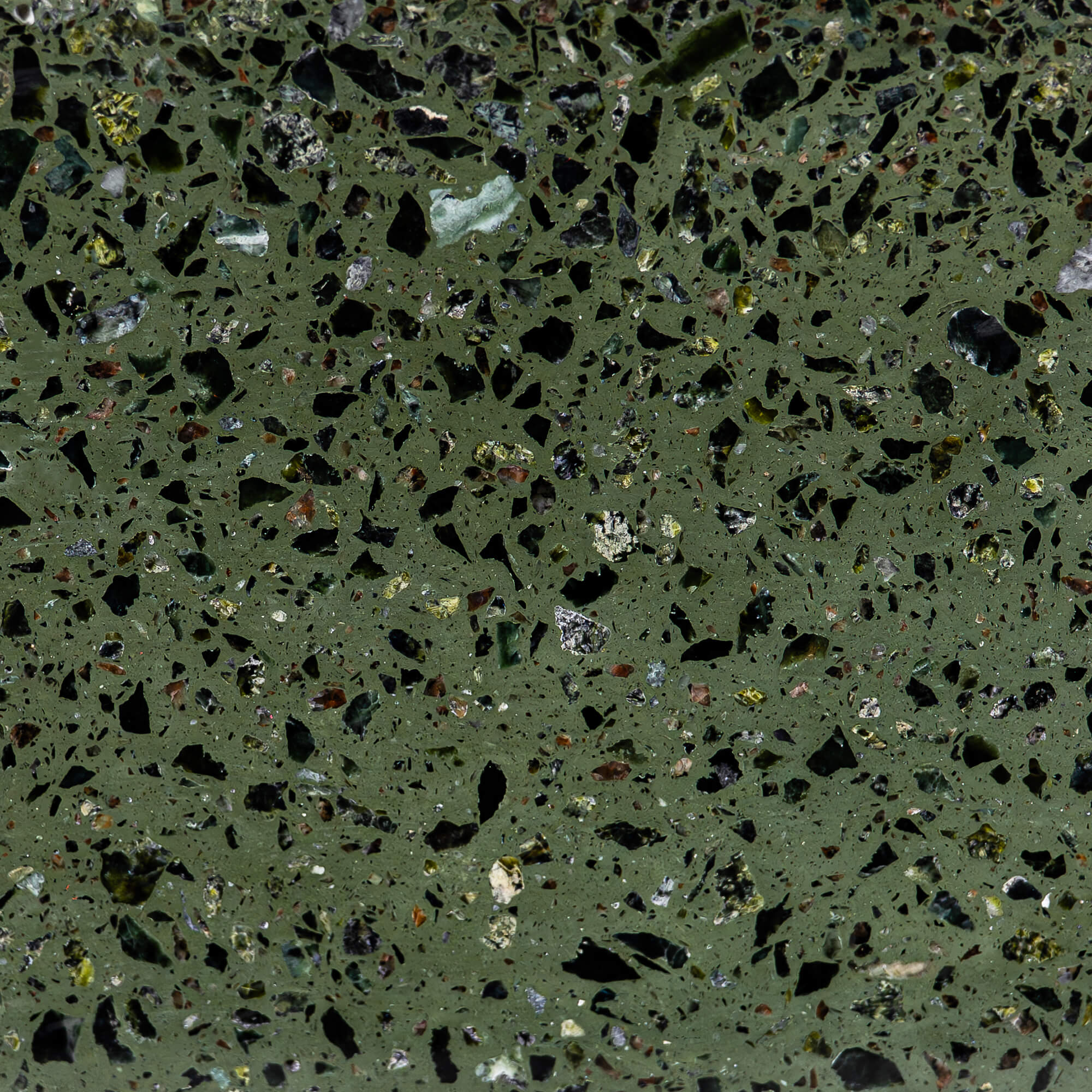 Handmade green terrazzo stone coffee/side table made of premium blend of marble and granite. Minimalist and luxury accent for home interior of any style.