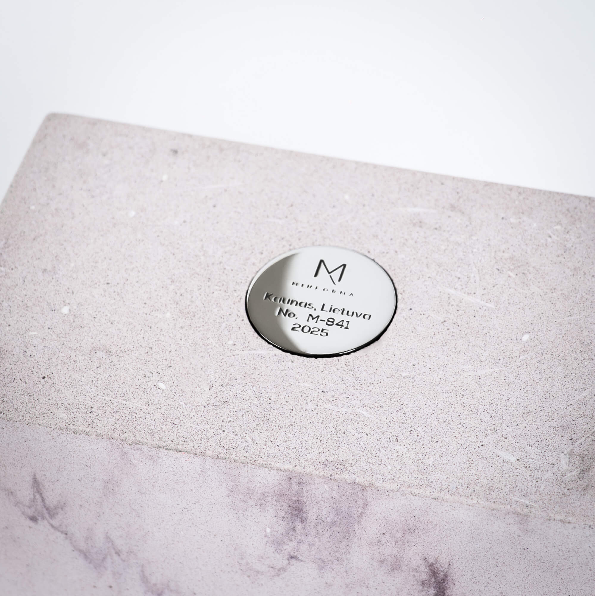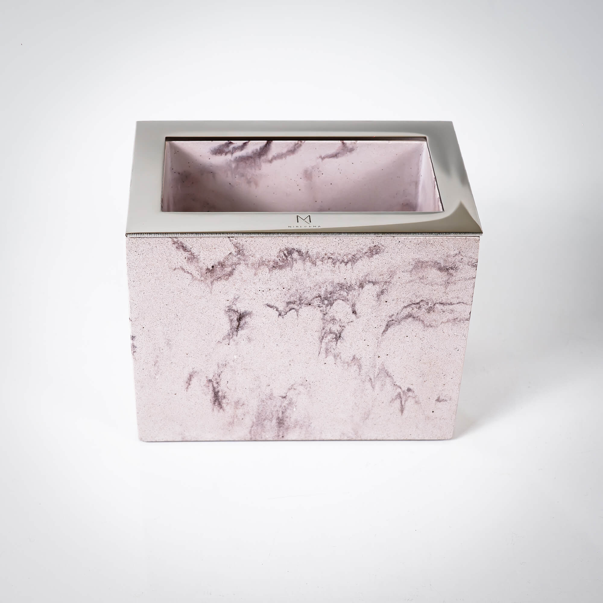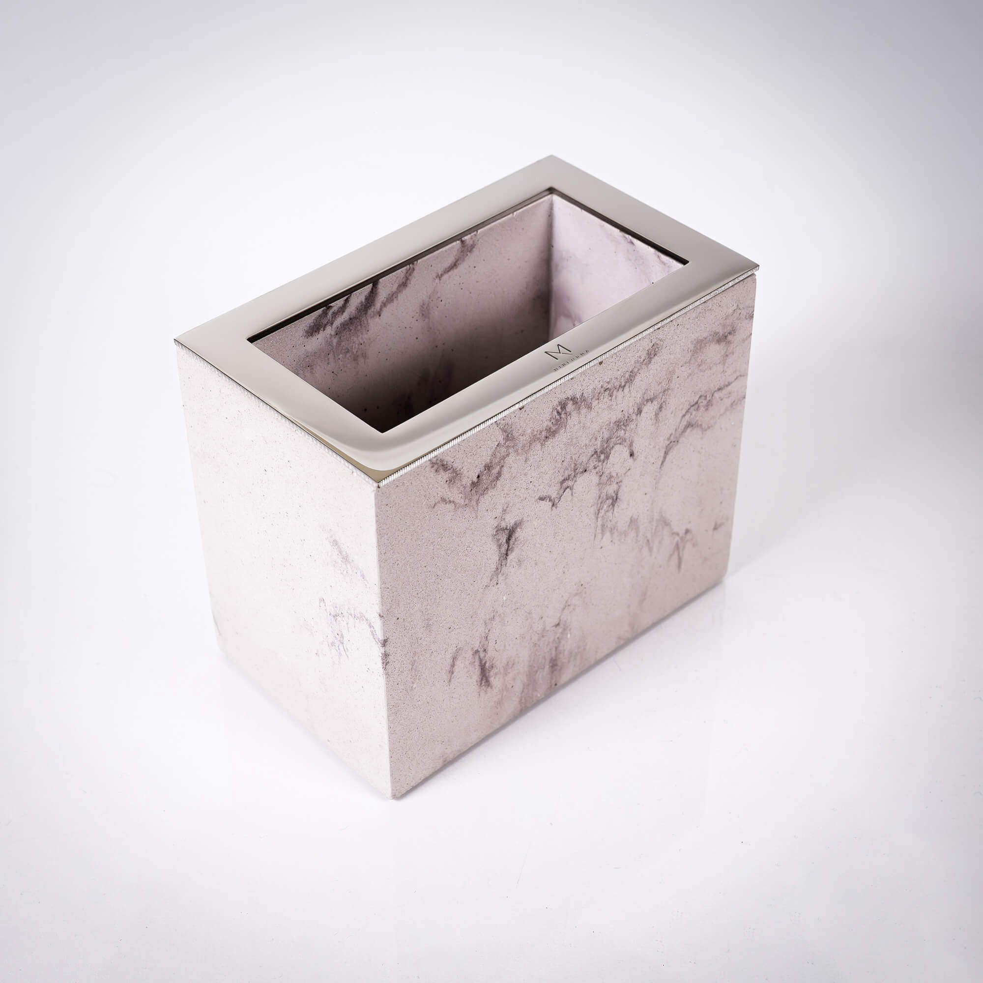 Handmade pen holder made of precisely polished marble texture concrete and stainless steel. Exclusive and contemporary accessory for home or office interior of any style.