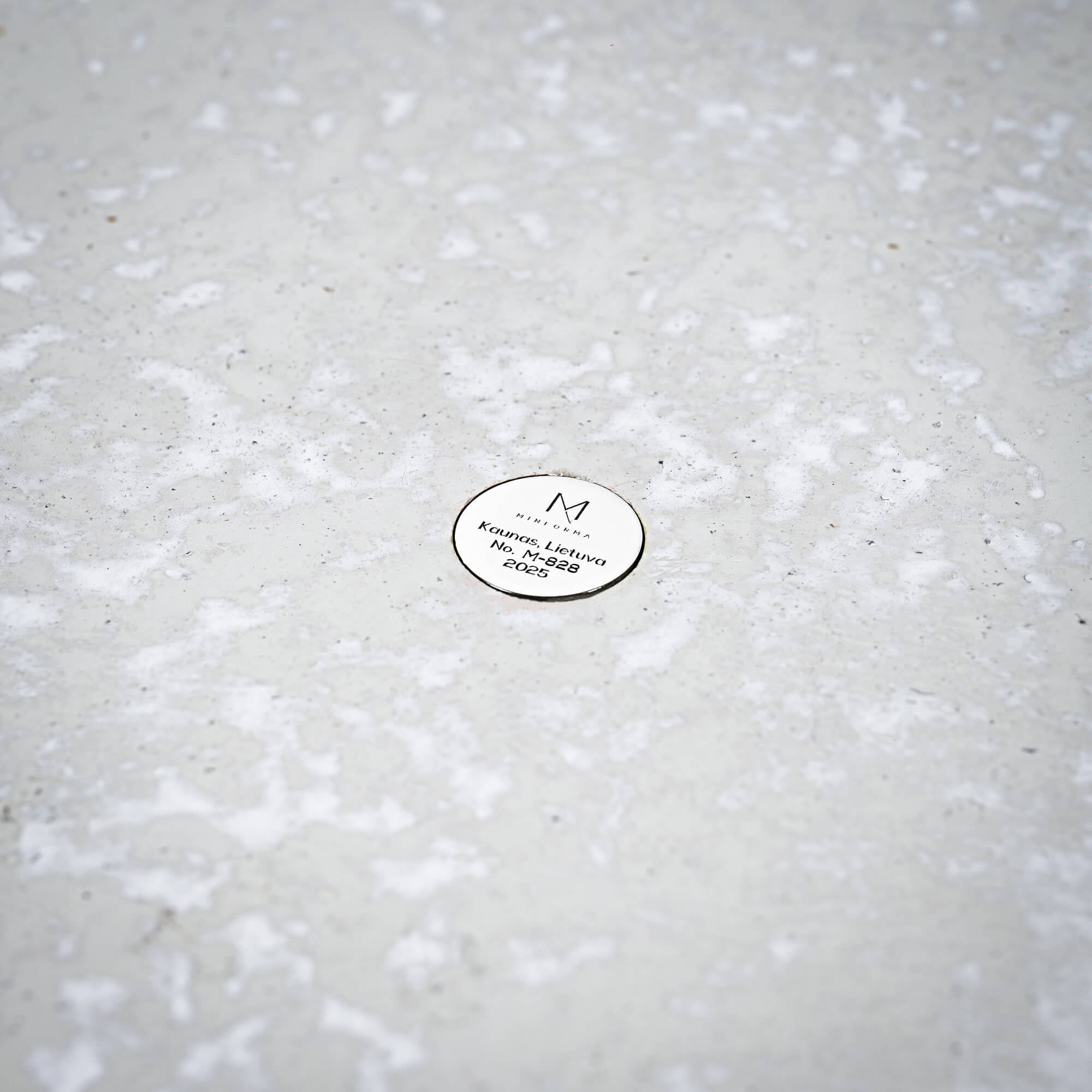 Terrazzo stone, raw polished stainless steel.