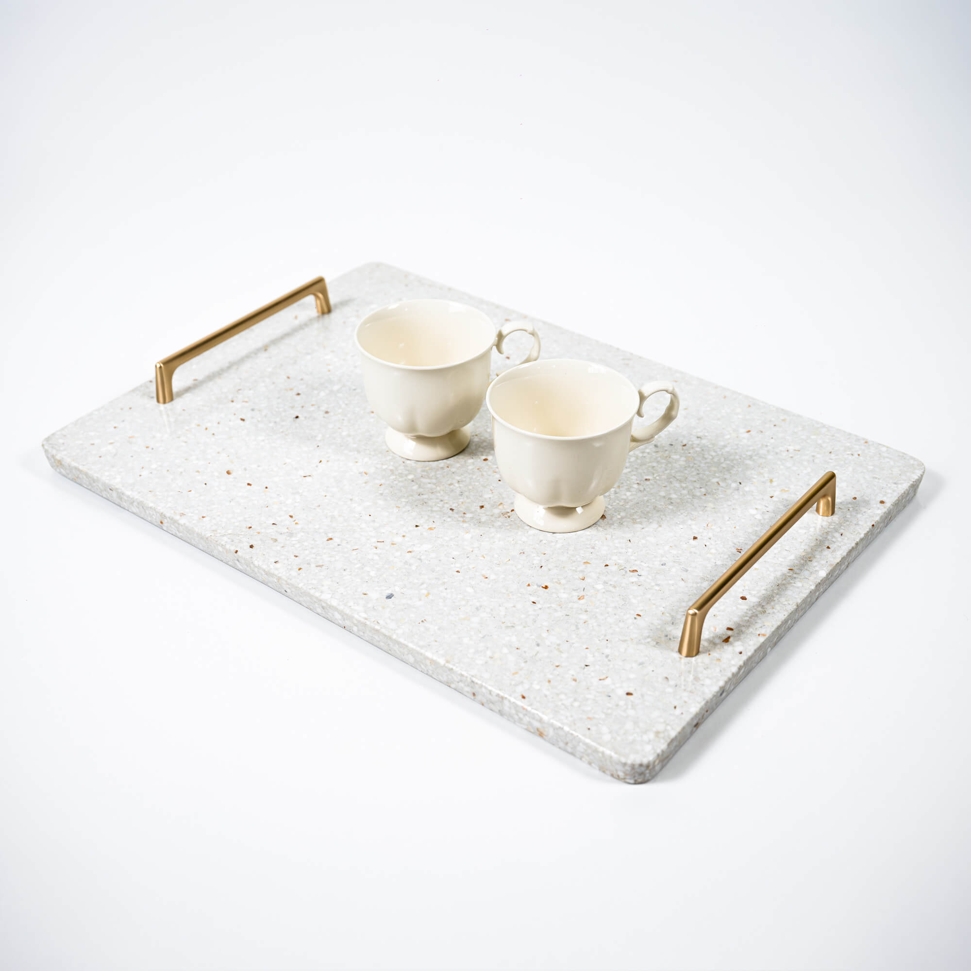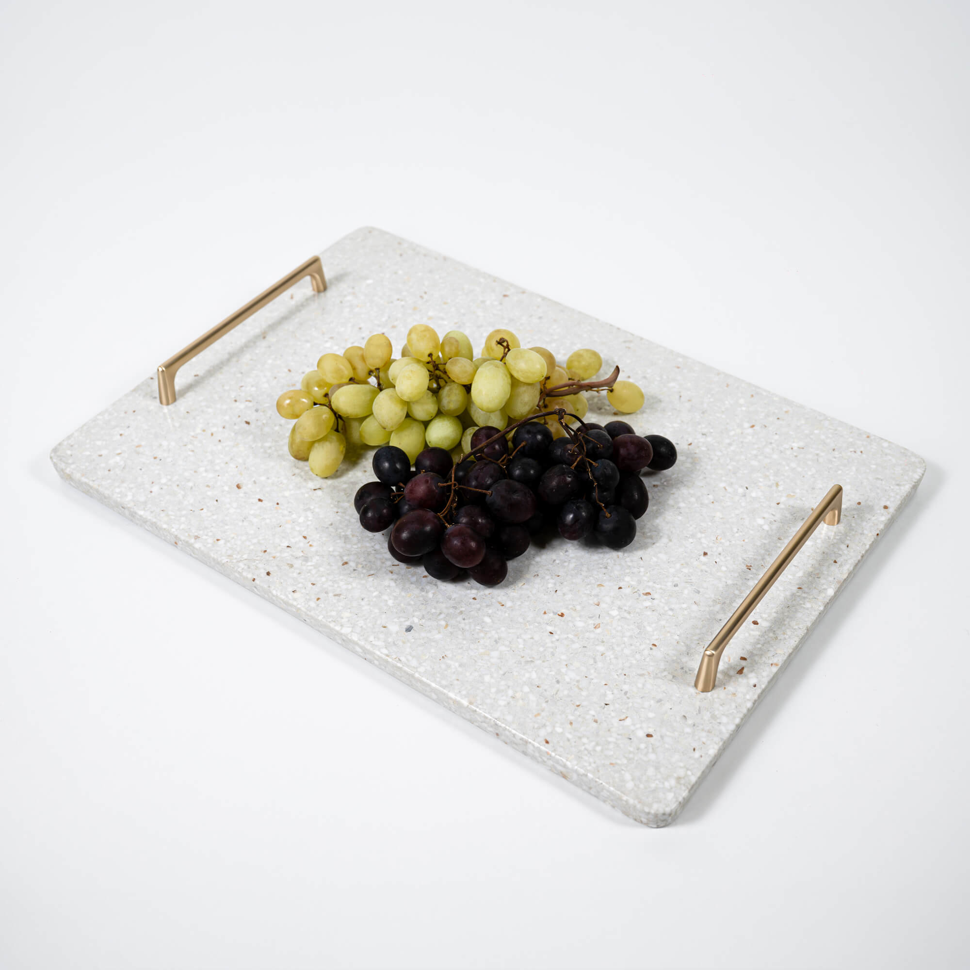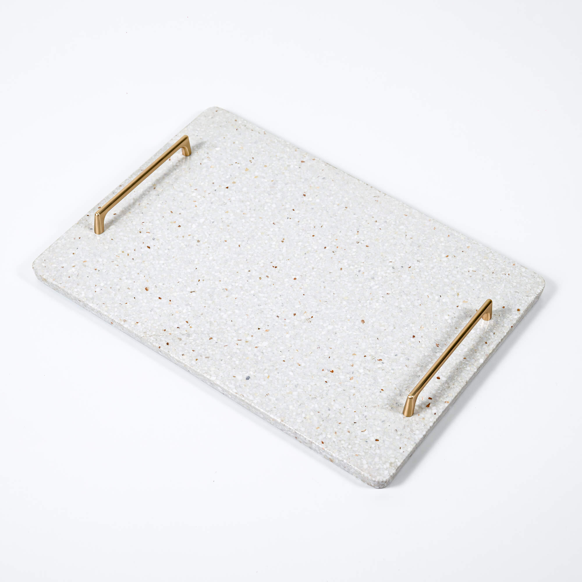 Handmade white terrazzo stone serving tray made of premium blend of marble and granite. Minimalist and luxury element for home interior of any style.