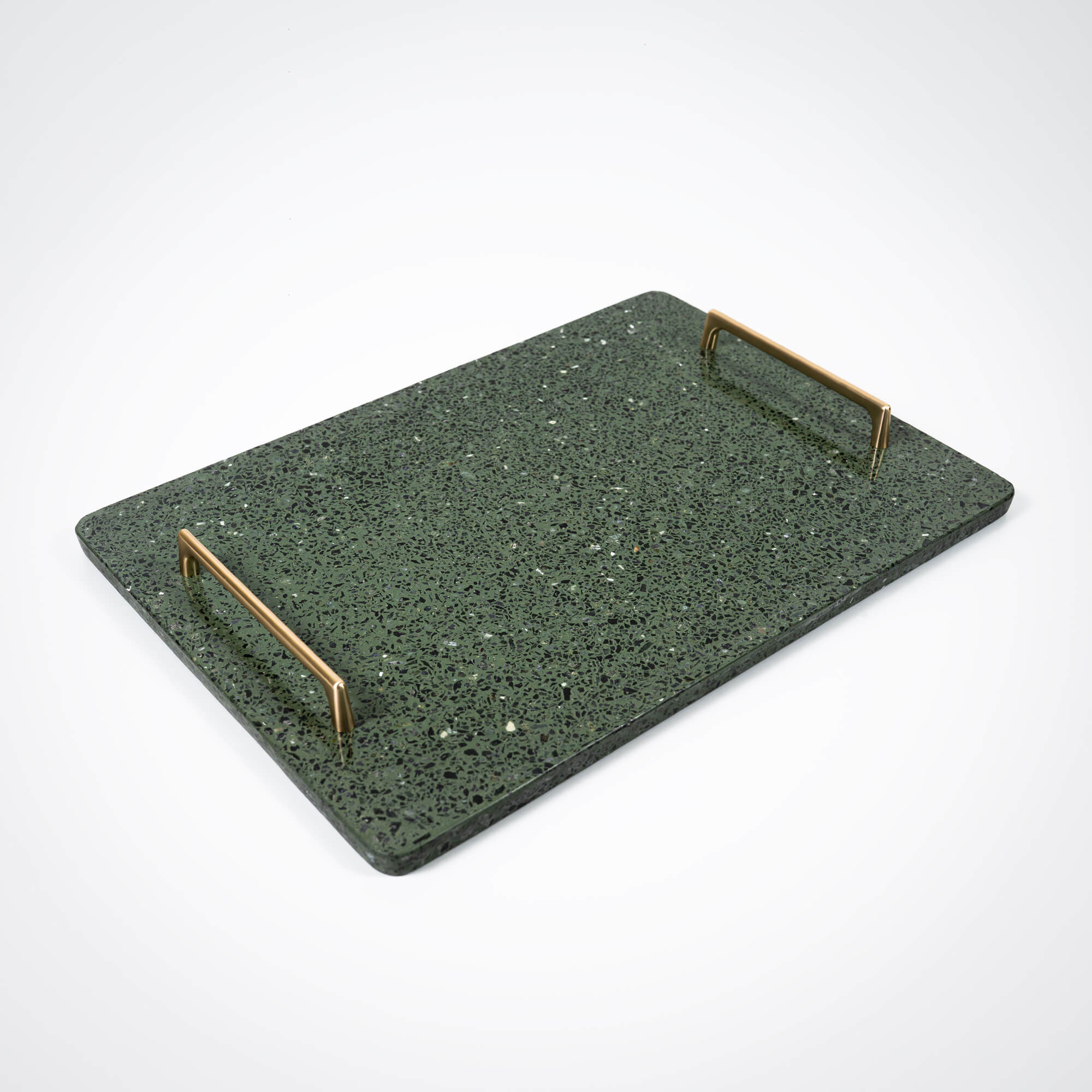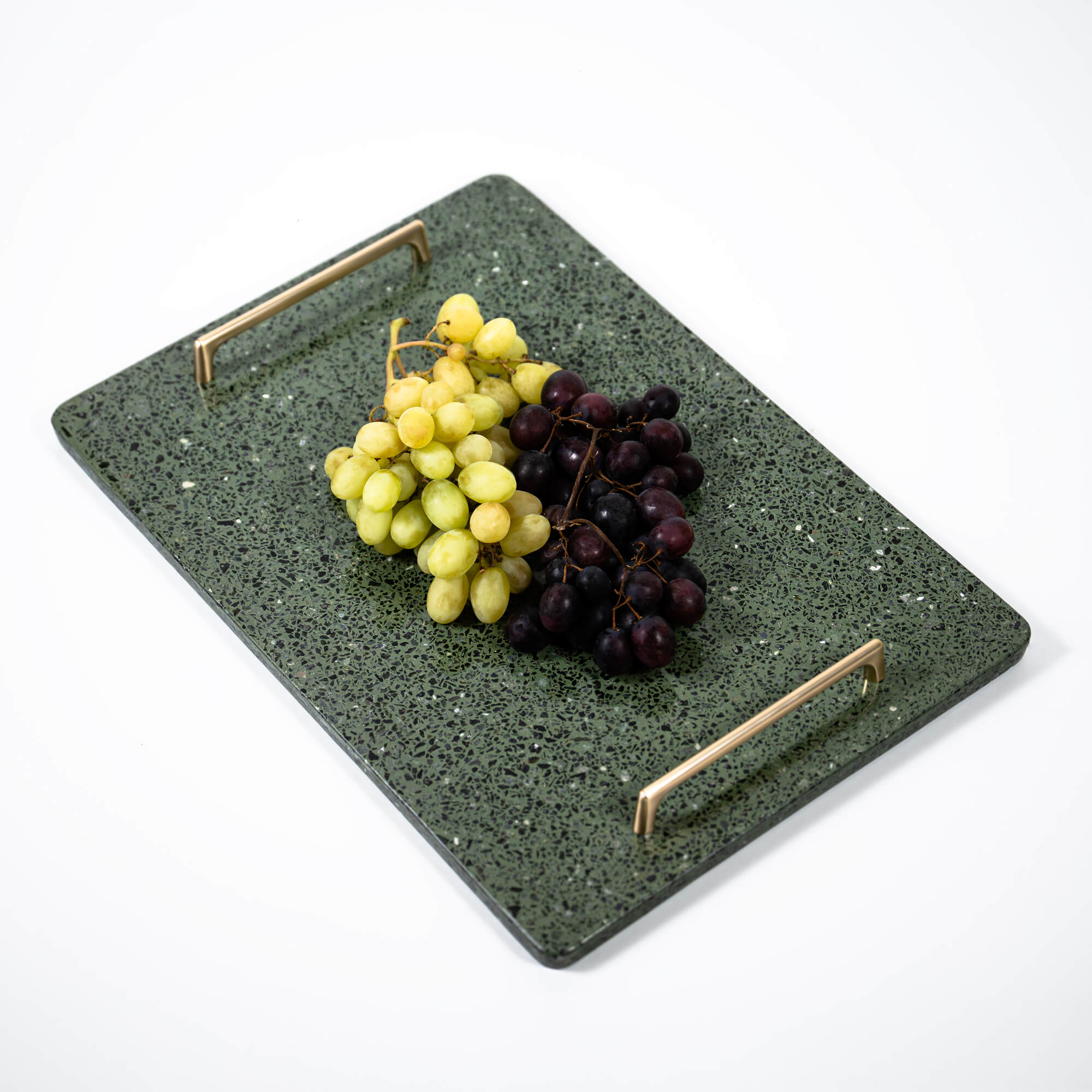 Handmade green terrazzo stone serving tray made of premium blend of marble and granite. Minimalist and luxury element for home interior of any style.